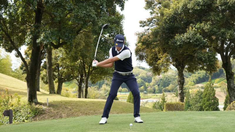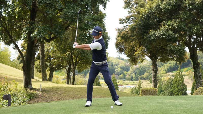 「トップでフェースをクローズにしているようですが、タメが強く、インサイドからアタックしているのでインパクトのバランスが取れています。