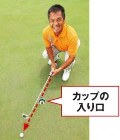 カップを50センチオーバーさせたときに、どのような角度で転がるのかを考える。そして最終地点から逆算して、カップの入り口(センター)をイメージすることが重要。