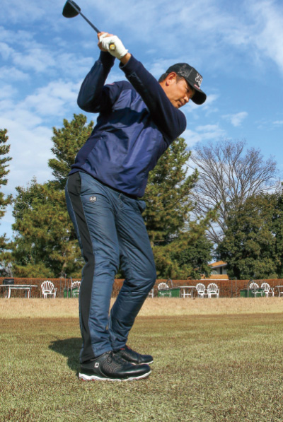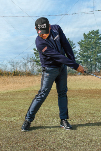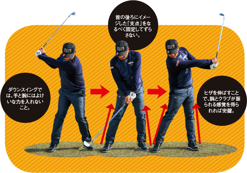 ヘッドが走らないと悩むアマチュアは、まずはヒザを伸ばすことで、ヘッドが加速する感覚を身に付ける必要があります。