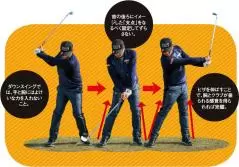 このドリルのポイントは、いかに手と腕から力が抜けるかどうか。ダウンスイングで腕とクラブは落ちるにまかせるということです。
