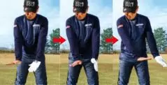 「ハンドスライド」の解決方法は、いたってシンプルです。いかに手と腕から力を抜いて、体を使って振れるかにかかっています。前述した「ヒザ伸ばしショット」だけでも、改善は可能ですが、ここで紹介するドリルも合わせて行うことで、大幅な改善が見込めるでしょう。