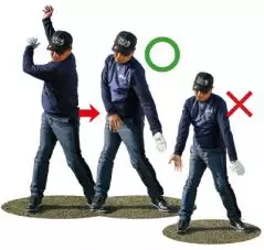 手で当てにいくことで起こる「ハンドスライド」は、いかに脱力して体を使って振れるかがポイントだ。