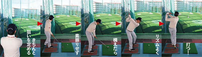 また、コースではリズムが早くなりがちなので、敢えて早いリズムで打ってもナイスショットが出るように、練習することも大切です。