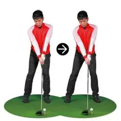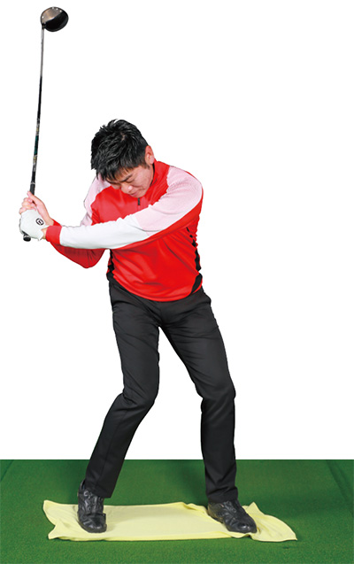 クラブが地面と平行になった時に右ヒザが左ヒザに寄る