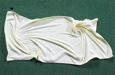 正しく動けるとタオルの右足側が写真のように大きくゆがむ。