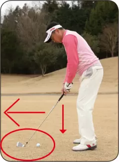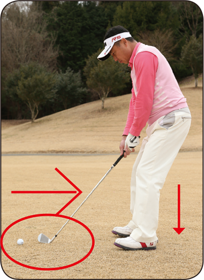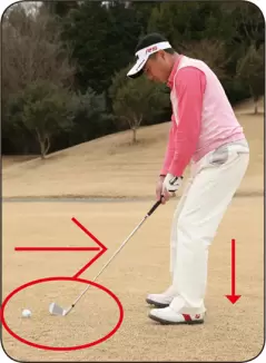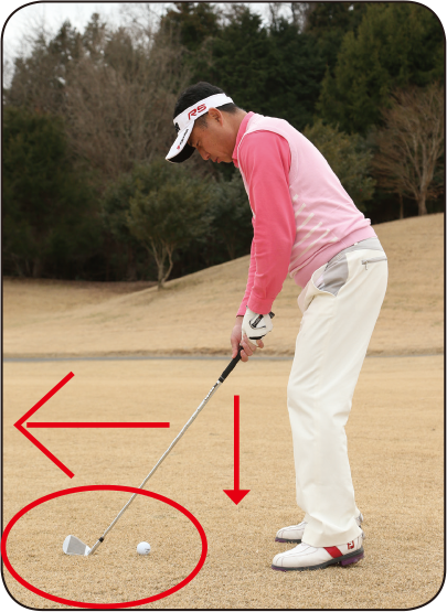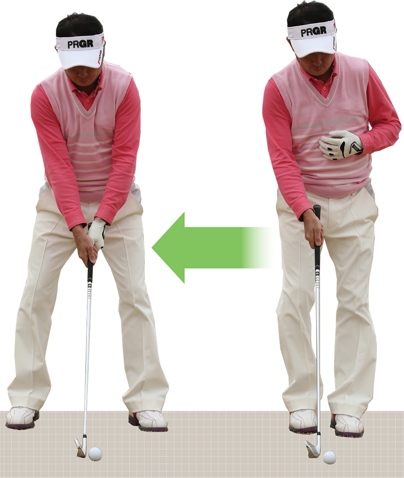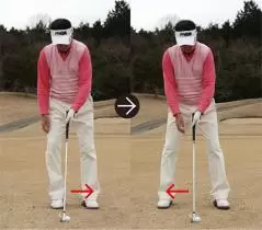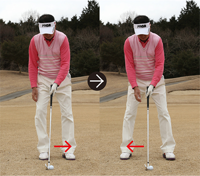 両足を閉じてからクラブをセットすると、 体とボールとの前後の位置関係も変わりずらい!