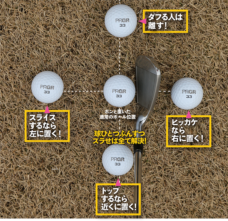 基本のボール位置が身についたら、ミスに対応するボール位置の応急処置を覚えよう。