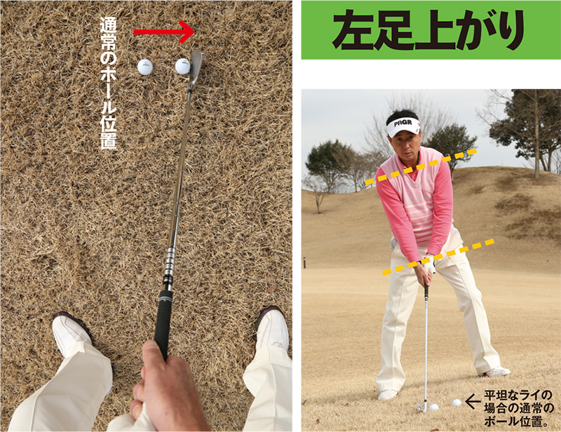 早速、それぞれの傾斜における最適なボール位置を紹介しましょう。