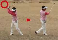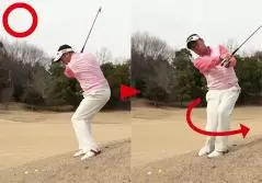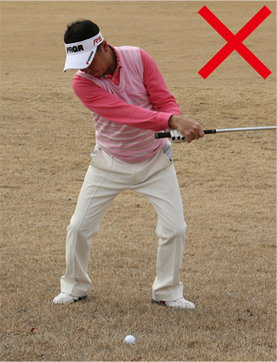 打ちにいって体が左に突っ込むと、チョロやダフリが出るので要注意。