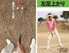 傾斜が左足上がりの場合のボーツ位置とスイングのポイント