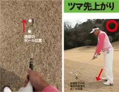 傾斜がツマ先上がりの場合のボール位置とスイングのポイント