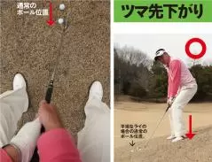 前につんのめりやすい傾斜のため、油断するとカカト体重が崩れ手打ちになりやすいので注意しよう。