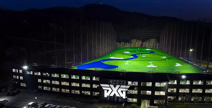 世界初のPXGドライビングレンジ。関西最大級となる141打席300ヤードのレンジで雄大な大阪の夜景が楽しめる。外壁にはPXGの巨大ロゴをデザインし、建物全体をPXGのブランドカラーである黒で統一。また館内では、個室のフィッティングルームで、PXG選任フィッターによるフィッティングが受けられる。