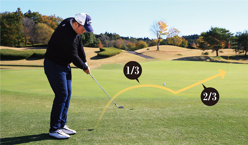 キャリーとランは1:2の割合が理想。ピンまで30ヤードならキャリー10ヤード、ラン20ヤードのイメージで打つ。