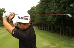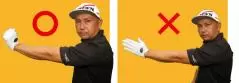 フックグリップなら左手に角度をつけることができるため、スイングアークを大きくなる深いトップがつくれる。