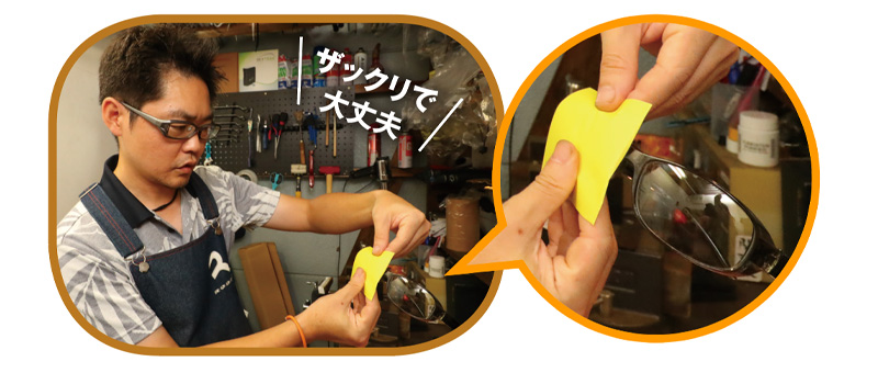 ハサミでメガネのカタチに切って