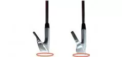 たとえば、フェース面が大きく、ソール幅が広い、そして低重心のキャビティーアイアンの様なミスに強いアイアンがやさしいアイアンです。また、リーディングエッジがオフセットされた(リーディングエッジがシャフトラインに対して後方に下げられた)グースネックのアイアンもやさしいアイアンです。