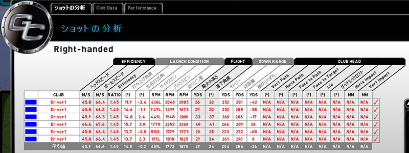 計測はスカイトラックGC2 を使⽤。5回〜10回のショットの平均値で⽐較