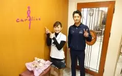 計測を終えた2名はすぐさまJR新宿駅南⼝からほど近い、好⽴地の「キャロリーヌ新宿本店」へ徒歩で向かい、早速「ゴルファーズエステ」ビフォー・ゴルフを施術。
