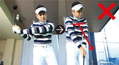 《NG》 顔が左を向くと体が開いてカット軌道に!