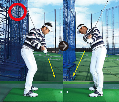 グリップエンドの指す方向に無頓着だと、スイング軌道がバラバラになって大曲がりショットは修正できない。