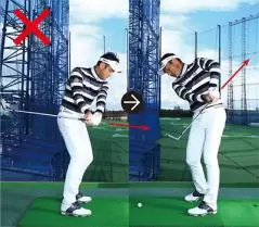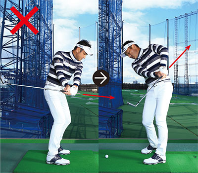 突然の大曲がりが出てしまう人は、軌道がバラバラで手打ちになっているケースが多いのです。軌道を安定させるには、正しいコックの仕方を身につける必要があります。