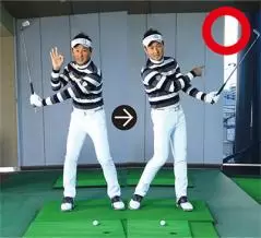 ここに注意! 左手親指が外を向くと正しい軌道から外れてしまう。