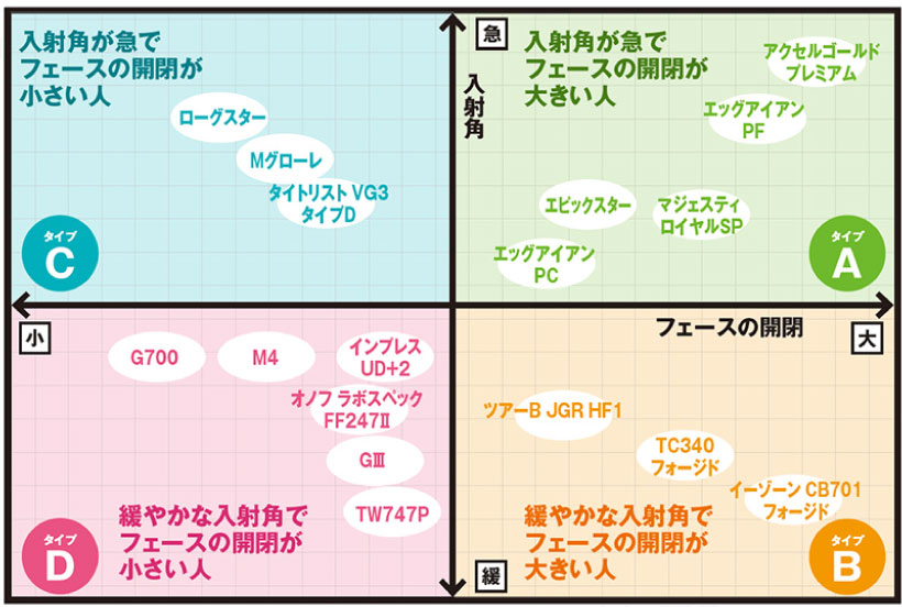 - 入射角が急でフェースの開閉が小さい人