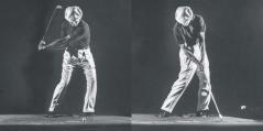 ホーガンはダウンスイングを腰の左回転から始めれば、オートマチックに手元とクラブが引き下ろされ、後は両手で叩くだけでいい、と『モダン・ゴルフ』で述べている。だが、ここには大切な動作の解説が抜けている、と森プロ。