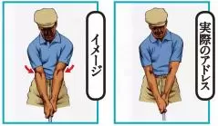 アドレスでは両ヒジは腰骨を指すイメージ