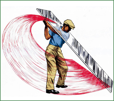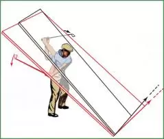 『モダン・ゴルフ』では、ダウンのプレーンはイラストのように右を向くとあるが、これではボールの上を空振りしてしまう。