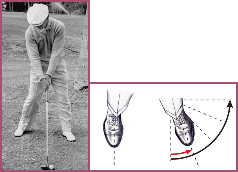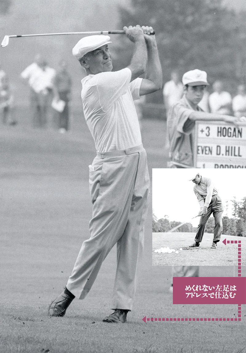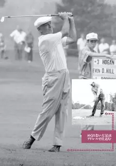 「1948年の著書『パワー・ゴルフ』では両ツマ先をハの字に開いていたホーガンですが、1957年著の『モダン・ゴルフ』では右足を飛球線に直角、左足は90度の4分の1程度開くことを提唱しました。右足を開かないという考え方やレッスンは、これが史上初だと思います」(森)