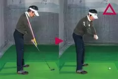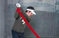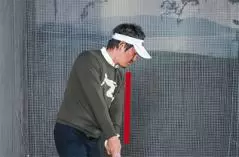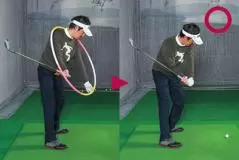 ダウンでも同一のプレーンに手元とクラブを通そうとすると、プレーンの上に外れてアウトサイドから入るミスが起きる危険性大。