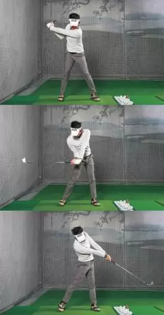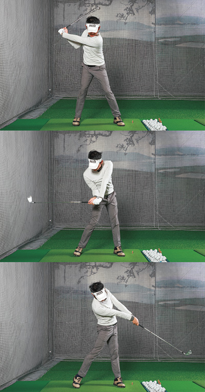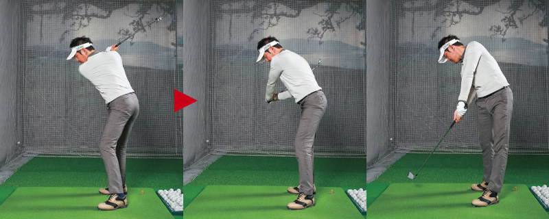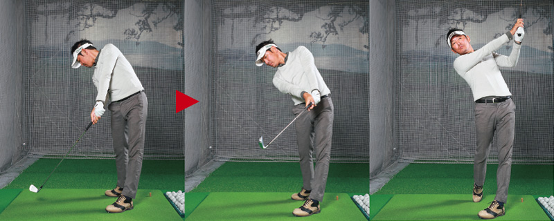 ヘッドを振る意識が腕の振りを促し、下半身のリード動作を追い越していく