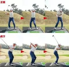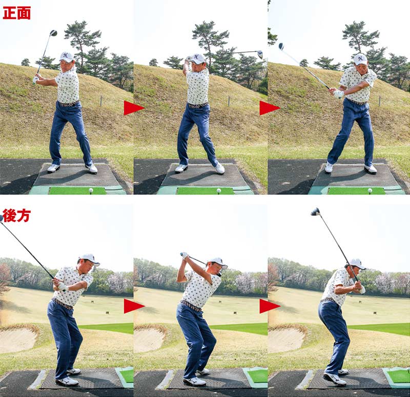 After:正面からの写真では右ヒジが見えなくなった! これならクラブがインサイドから下りてくる。