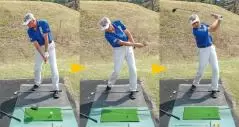 右ヒジを外に張り出すと、クラブが直線的にアウトサイドから下りてくる。