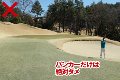 バンカー越えはもちろん、バンカー方向を狙うのも絶対NG!