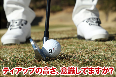 プロの中には、芝の状況などが良ければそのまま地ベタに球を置いて打つ選手もいるほど! もともとティイングエリアで、基本的には平らで芝がそろえられていてライがかなりいい状況ですから、ティアップするにしても、上の傘が出る程度まで。「芝が奇麗にはえそろったフェアウェイの上にボールがある」ような、少し球が浮いたベストなライを作ってあげことを目的と考えてください。