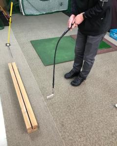 パターを動かしすぎると、角材の高さからパターが外れてしまいます。ですので、角材の高さから外れないよう、パターのフェースが真っ直ぐ正面に向いた状態で振れるように練習しましょう。