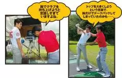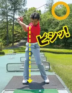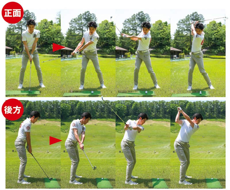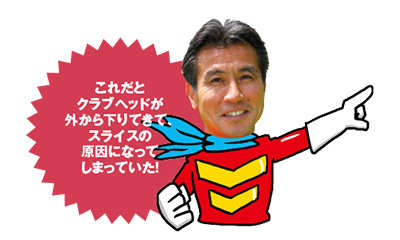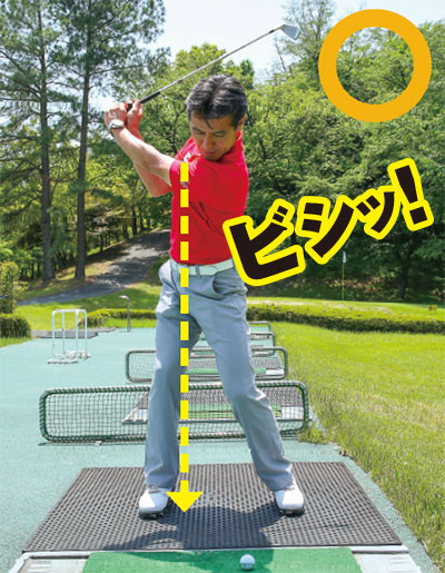 体でターンせず、腕だけでクラブを上げてしまうことで、トップで背骨が目標方向に傾いてしまっていた!!