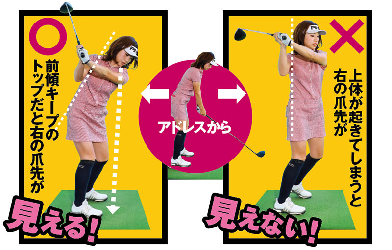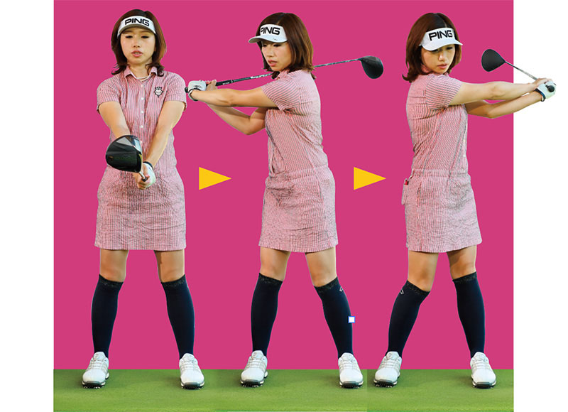 ワンポイントレッスン:アドレス時の前傾をキープして、テークバックからトップまで、上体を回していきましょう!