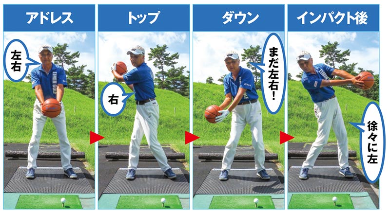 インパクトでも左へ移動せず、アドレスに戻るくらいの意識で!