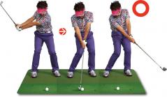 ゴルフが難しいのは、ボールが地面の上、あるいは低い位置にあるので、上から打ち込んだりすくい上げたりして、余計な腕の動きが加わってしまうから。インパクトゾーンでのフェースの向きが大きく変わってしまうため、ミスヒッとになってしまうのです。