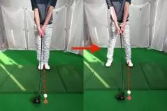 注意したいポイントは、ボール位置が極端に左へ寄り過ぎないことです。ボール位置が左寄り過ぎると、スイングの最下点後にボールをインパクトすることになります。するとインパクトはアウトサイドイン軌道となり、結果的にスライスの原因につながりやすくなります。