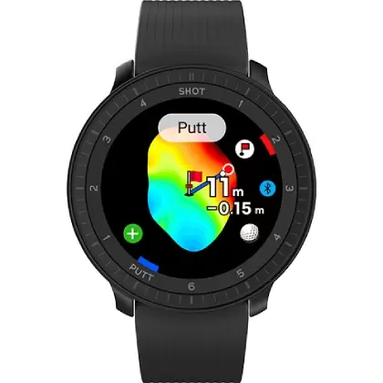 さらに、ゴルファーの現在位置に基づいて最適なグリーンまでの距離を提供するアクティブグリーンを搭載。重量はわずか28.5gと軽量ながら、全世界4万以上のゴルフコースデータを収録。スマート省エネモード適用で最大約54ホールプレイ可能です。