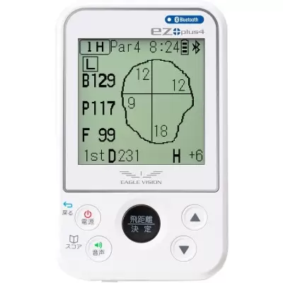 EAGLE VISION ez plus4は、「みちびきL1S」に対応しており、誤差1mの高精度な距離測定が可能です。現在地からピンまでの正確な距離をリアルタイムで表示してくれるので、クラブ選択に役立ちます。