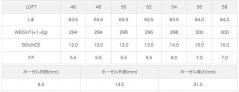 ・ロフト角(45~62°)・ライ角・バウンス角・F.P・ヘッド重量