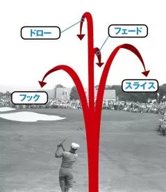 フェード:フック回転の要素を消したストレート弾道。フェースを立てて打球のタテ回転を強めるため、打ち出し角度が低めになる。