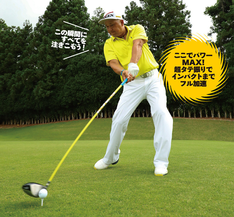 飛ばすためのスイングは、最大限のパワーとスピードでインパクトの一瞬を迎えるためのもの。