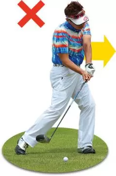 切り返しで左足を踏めない人は、手を使ってクラブを振り下ろさないと打てない。その結果、手打ちのスイングになり、体が早く開いたり、上体が突っ込んだりしてしまう。